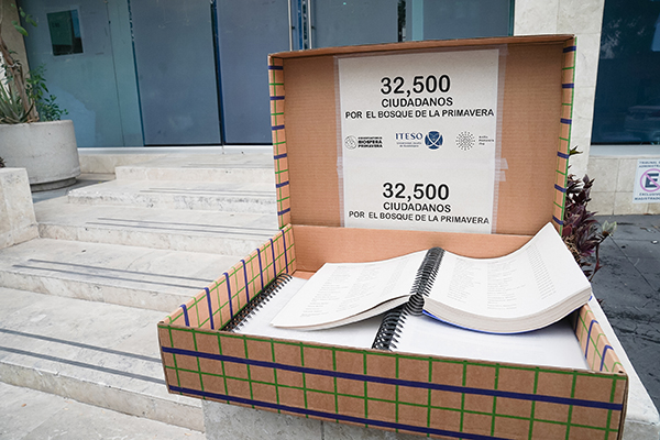 Integrantes de la asociación civil Anillo Primavera y académicos del ITESO entregaron la mañana de este miércoles, en las instalaciones de la Coordinación General Estratégica de Gestión del Territorio, 32 mil 500 firmas de ciudadanos que piden medidas urgentes para modificar la tendencia de degradación del Bosque La Primavera.