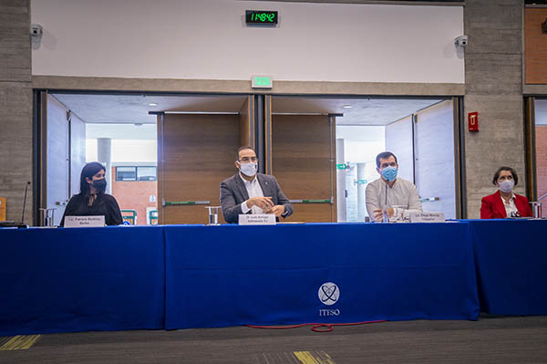 Patricia Martínez, titular de la Coordinación General Estratégica de Gestión del Territorio del Estado de Jalisco (CGEGT), Luis Arriaga, SJ, rector del ITESO; Diego Monraz, secretario de Transporte del Estado de Jalisco, y Catalina Morfín, directora General Académica del ITESO.