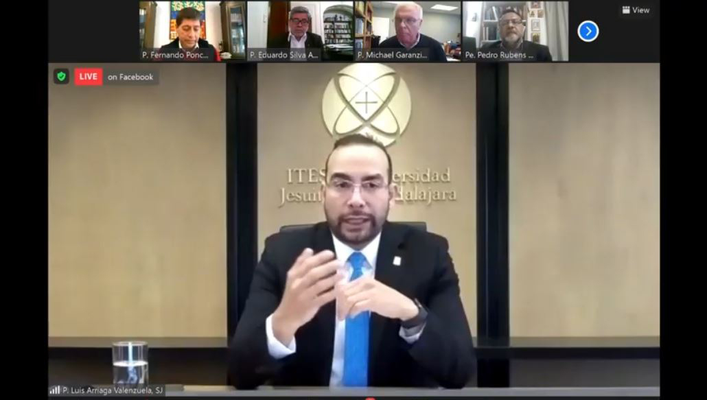 El diálogo con el Padre Superior General fue guiado por Luis Arriaga Valenzuela, SJ, rector del ITESO y actual presidente de la Ausjal, quien se congratuló de contar también con la presencia de Michael Garanzini, SJ, secretario mundial para la educación superior de la Compañía de Jesús y presidente de la Asociación de Colegios y Universidades Jesuitas (AJCU), así como de sus pares rectores de las universidades confiadas a la Compañía de Jesús en la región.