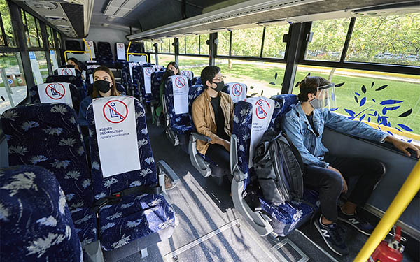 Se realizaron ajustes en espacios académicos, oficinas y unidades de transporte para mantener el distanciamiento entre personas; en algunos casos se retiró mobiliario, en otros se solucionó con acrílicos o mamparas. Habrá otros lugares en los que se proporcionará una careta a los colaboradores cuando estos regresen.
