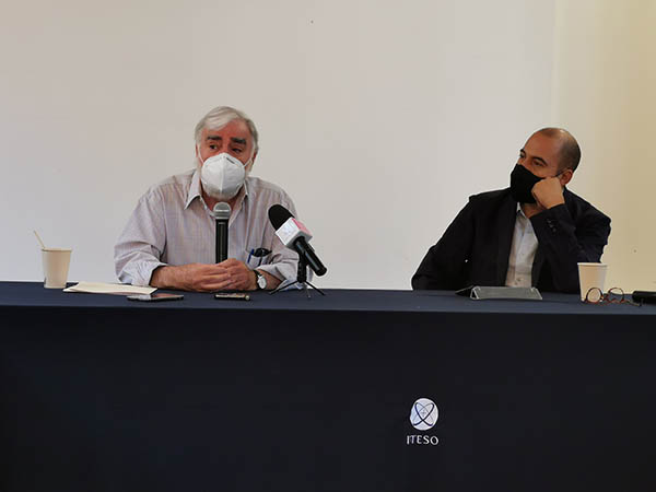 Gutierre Aceves, cordinador de la Casa ITESO Clavigero, y Bernardo González, director del Centro de Promoción Cultural del ITESO.