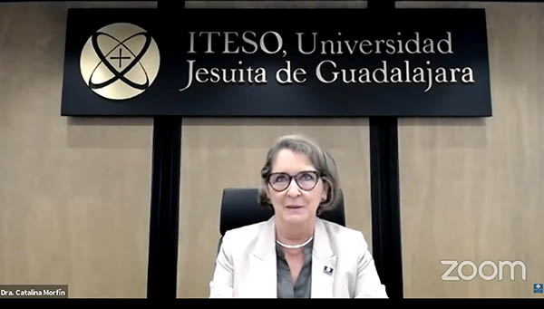 Catalina Morfín, directora general académica del ITESO, celebró la realización de la que calificó como "una saludable tradición institucional" y dijo que la Jornada de Investigación y Posgrado es una "oportunidad para reunirnos y reflexionar sobre las labores sustantivas de la universidad". Destacó que la pandemia llevó a una reflexión "sobre lo verdaderamente importante en la educación del posgrado: la centralidad de la persona".