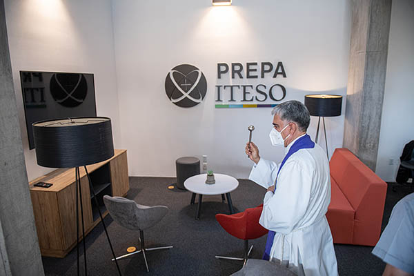 José Francisco Méndez Alcaraz, SJ, socio del Provincial de la Compañía de Jesús en México, bendijo las instalaciones de la Prepa ITESO.
