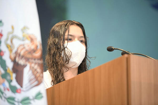 La joven bachiller señaló que "la crisis es una oportunidad para ver el vaso medio lleno y decidir nosotros con qué queremos llenar la otra mitad". También expresó que "una persona que entra al ITESO es una nueva luz que se enciende".