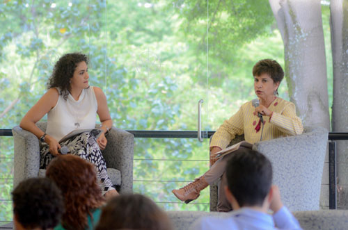 Alejandra García Bado, encargada de proyecto de la Oficina de Publicaciones, y Susana Herrera, académica del Departamento de Estudios Socioculturales.