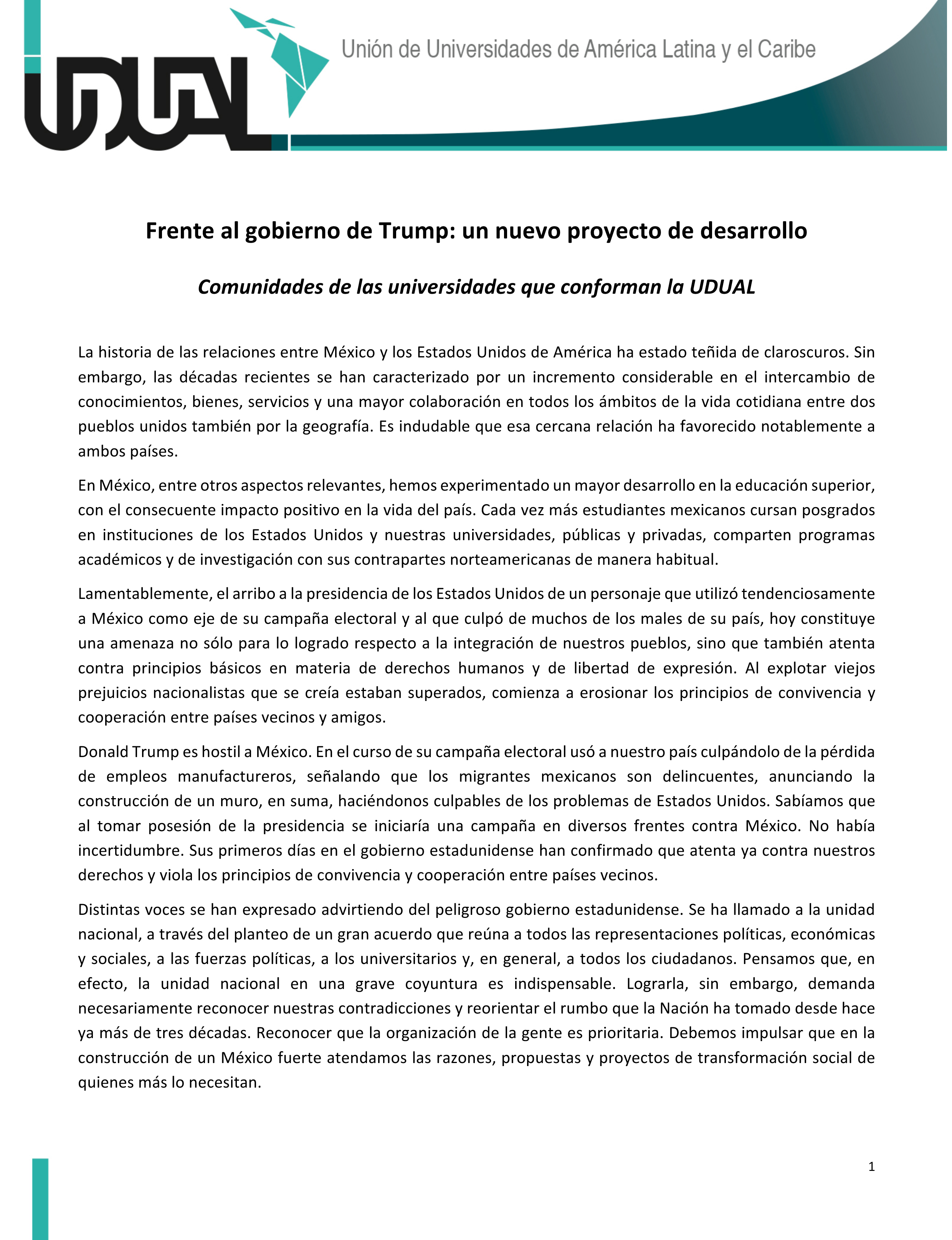 - Universidades se pronuncian ante políticas del gobierno estadounidense